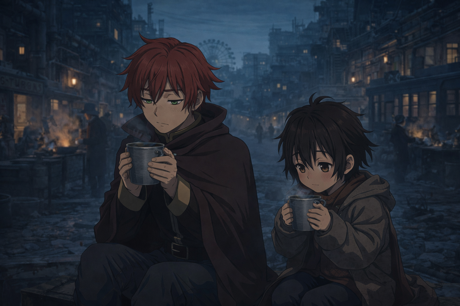 薄暗い朝のスラムに、二人の“始まり”を告げる静かな友情が宿り始める。
