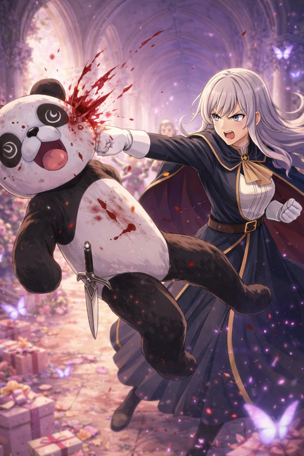 着ぐるみの頭部が不自然に跳ね、“騎士だったもの”が宙を舞う。