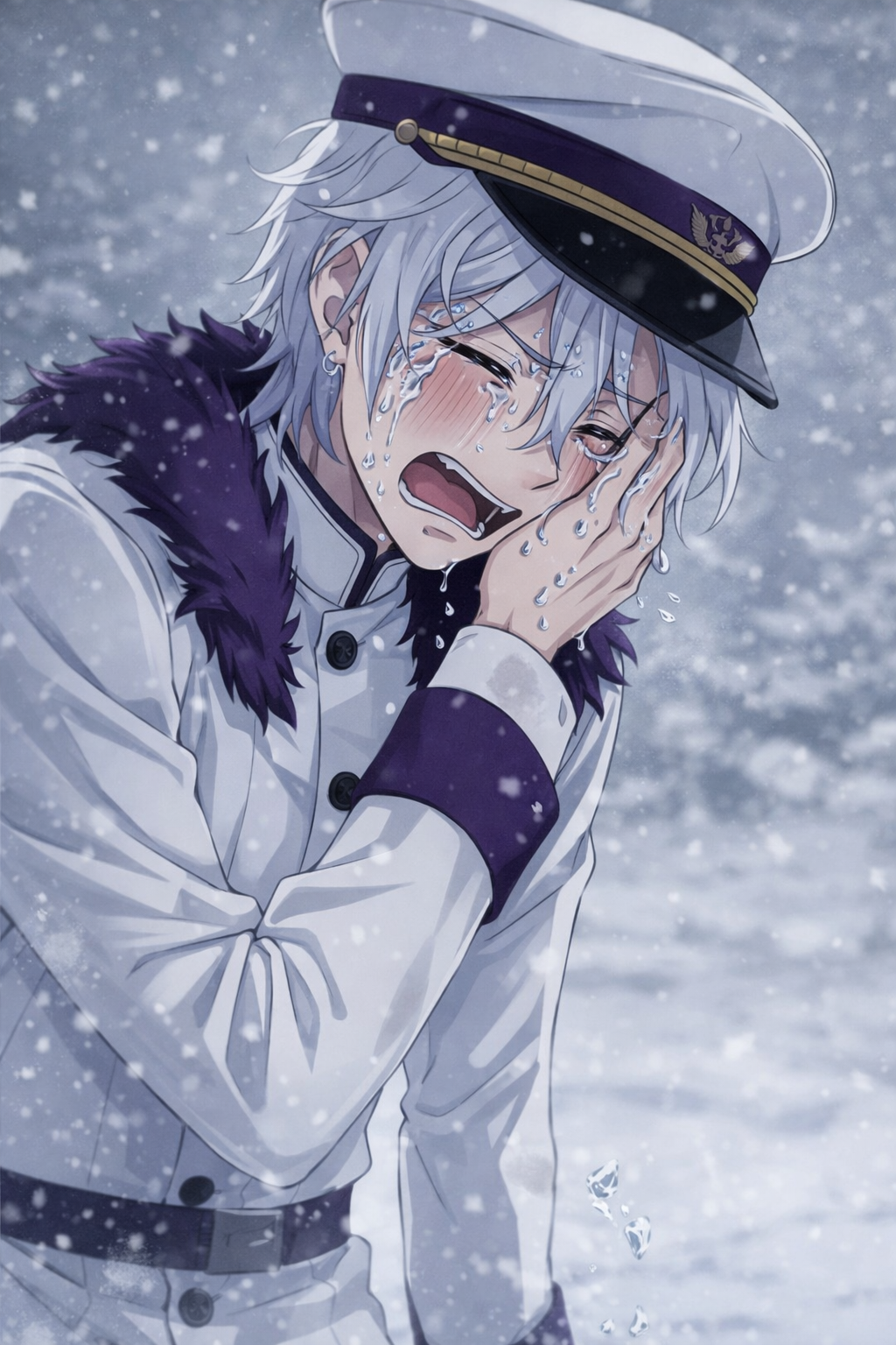 雪に手をつき、びしゃびしゃに濡れながら泣き喚く。