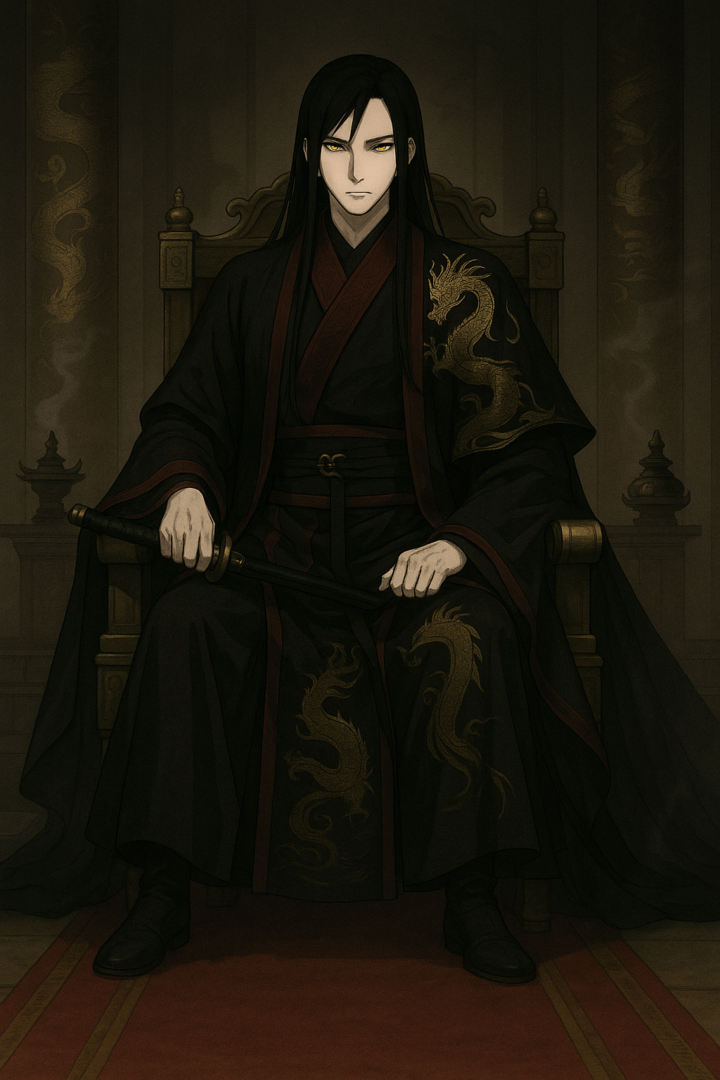 漆黒の衣に金糸の龍を纏い、その佇まいは王者にして武人。