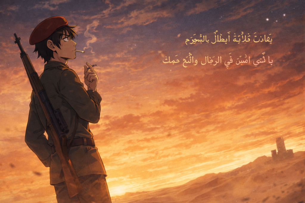 يا فتى، اِمْشِ فِي الرِّمَالِ وَاتْبَعْ دَمَكَ