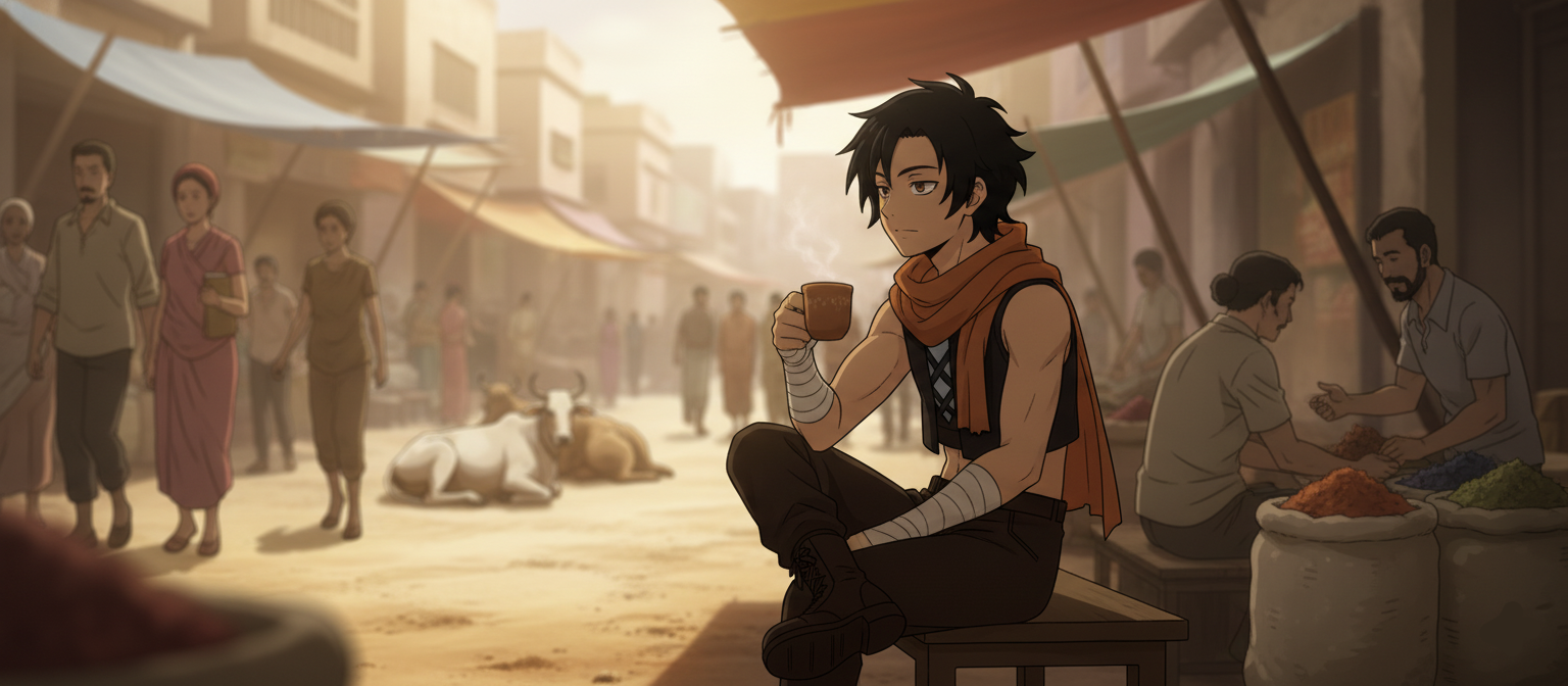 サタヌスはチャイの湯気をぼんやり眺めながら、露店の影に腰を下ろしていた。
