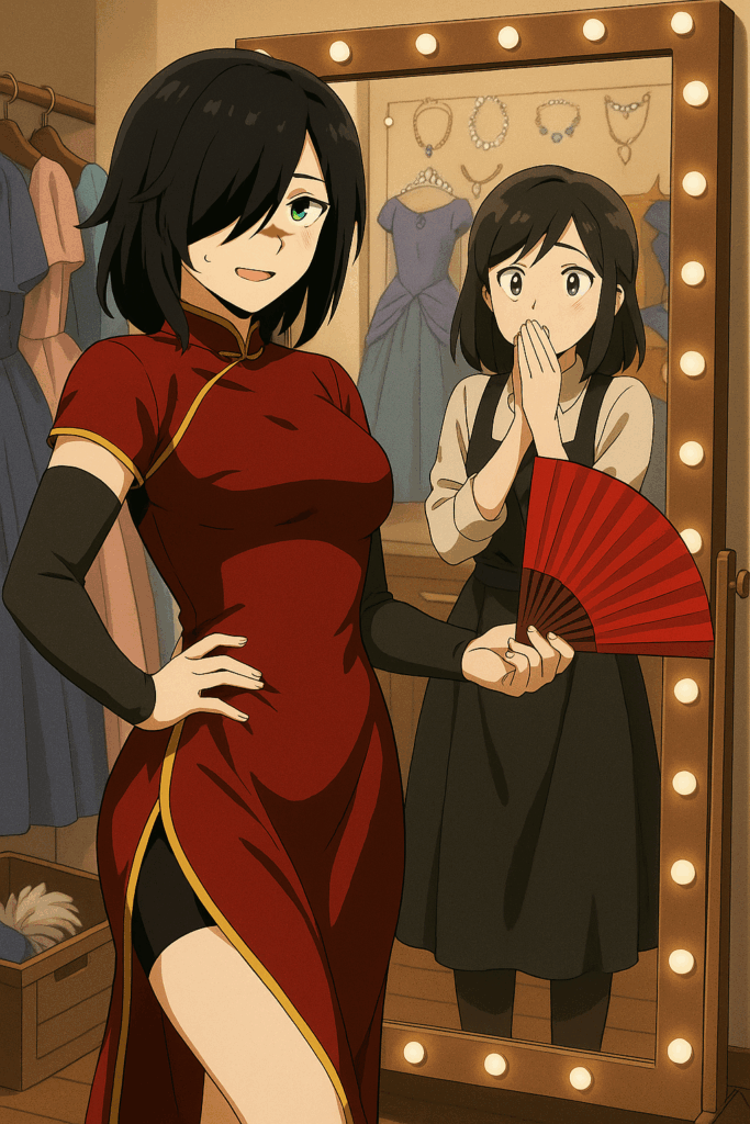 骨格は女としてたくましすぎるが、チーパオに黒髪が合わさり。