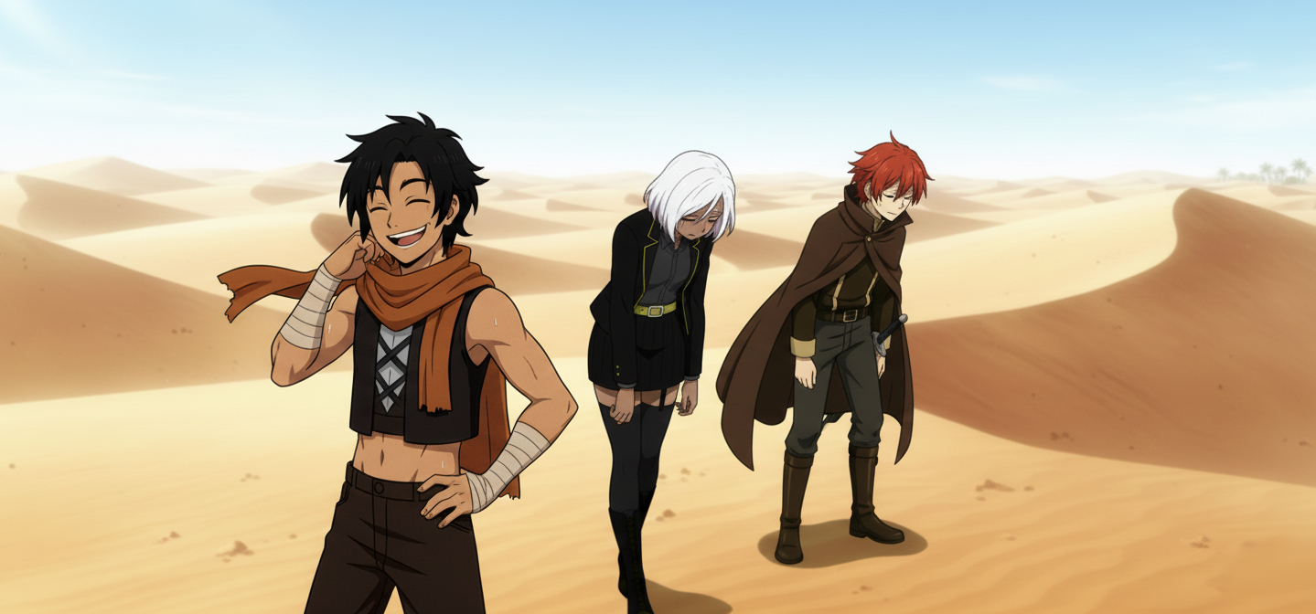 三人の勇者は、砂丘の上で完全に明暗を分けていた。