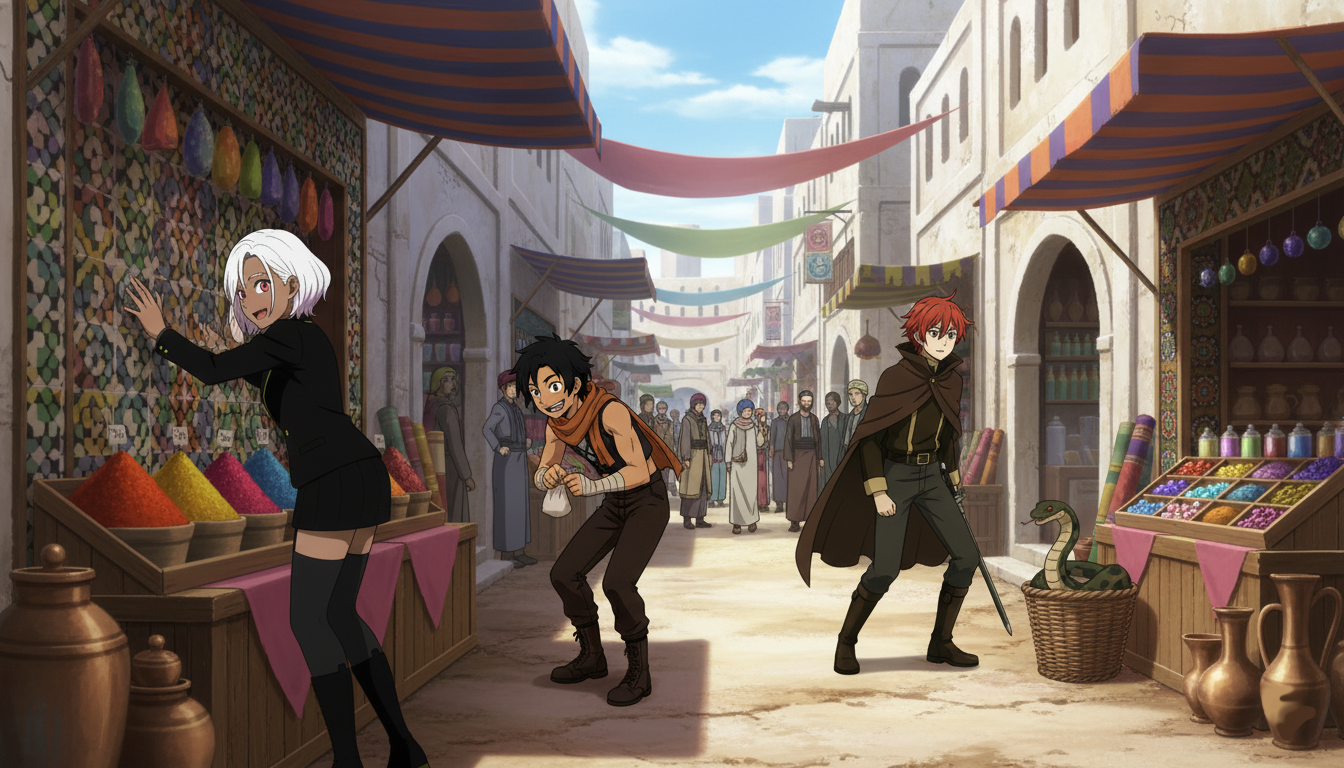 三人はバザールの奥へ、異国の喧騒に飲み込まれていった。