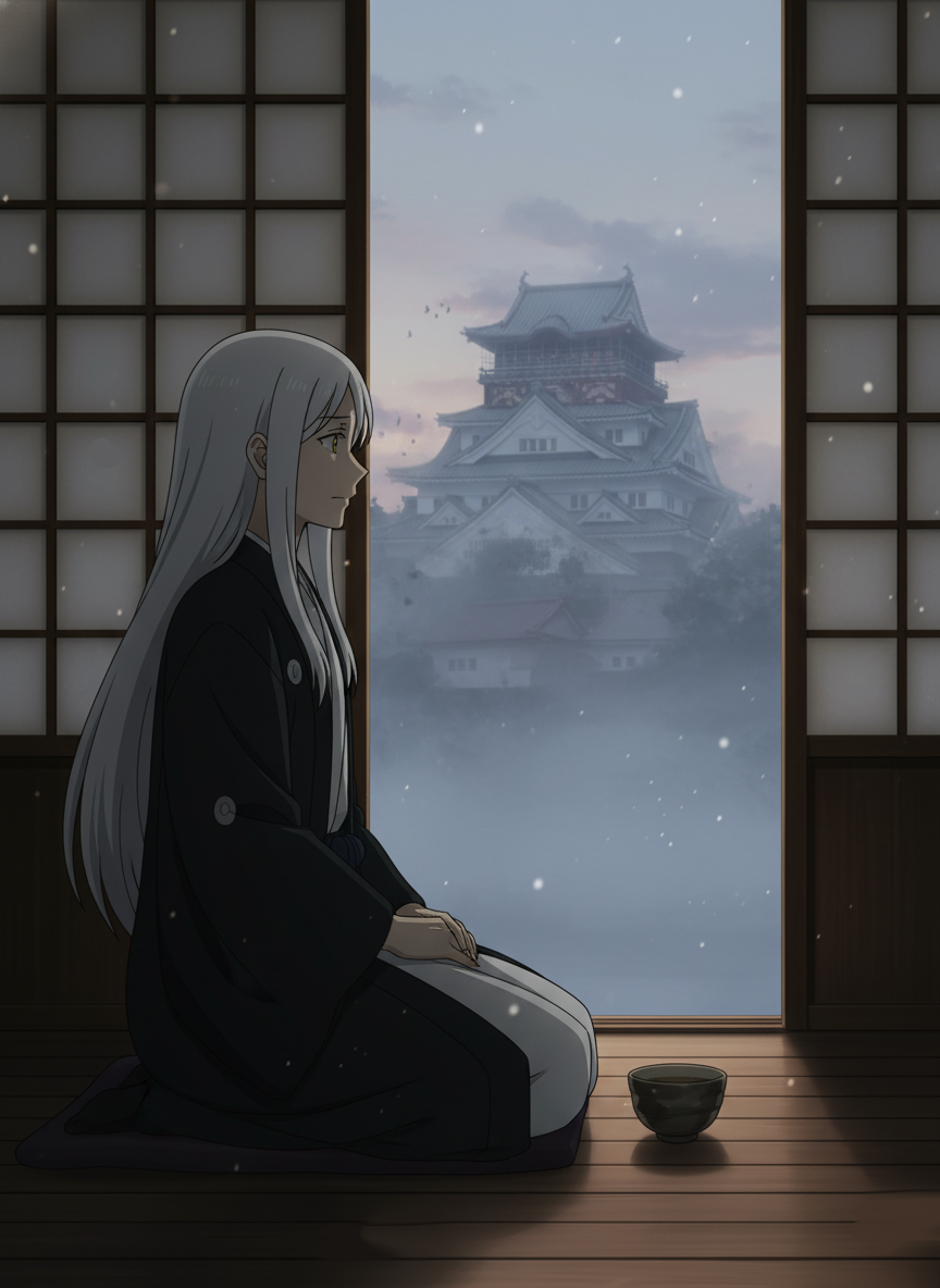 静寂の中、雫宮の視線がふと、山の彼方へ向けられる。