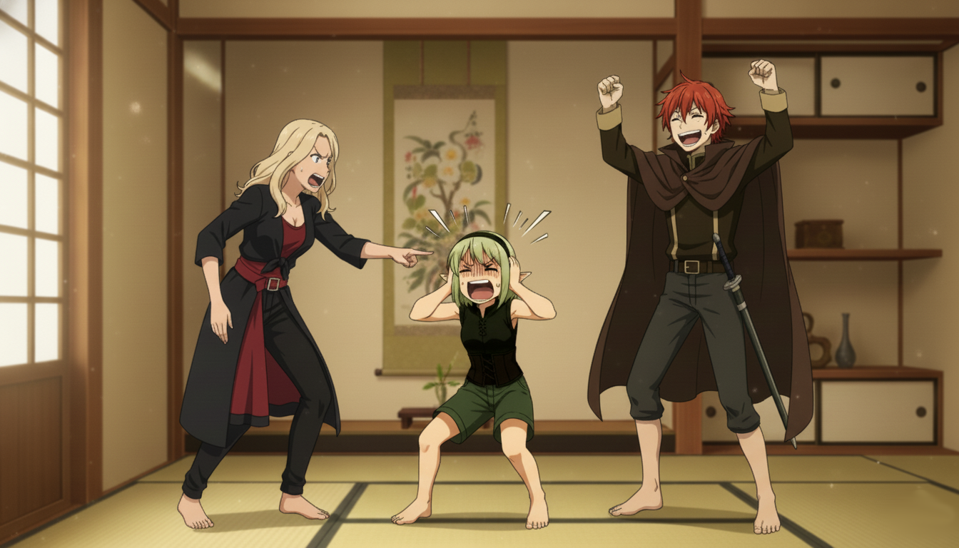 部屋の外では風鈴が鳴り、障子の隙間から誰かの影がふっと横切った。