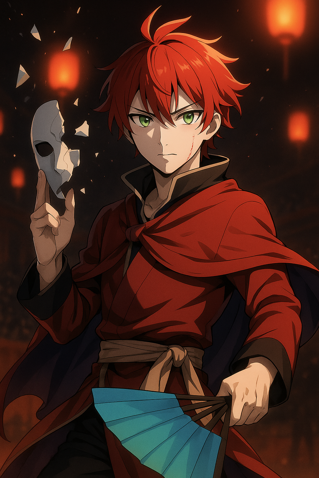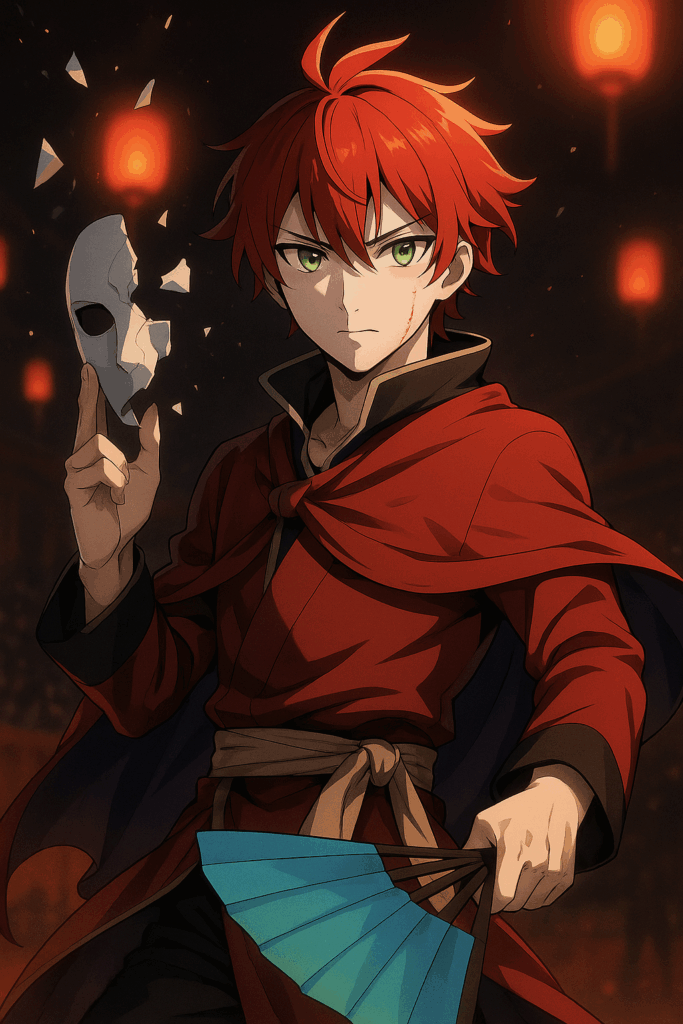 特徴的な顔の傷、虹色の瞳。燃えるような赤い髪。