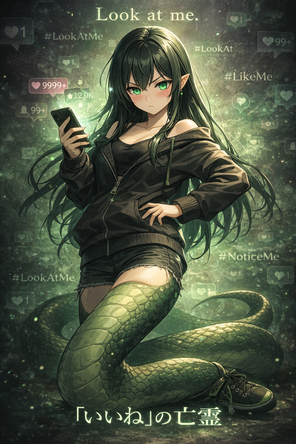 モチーフは蛇、ラミア少女で現代的なラフ服+スマホを常に所持。