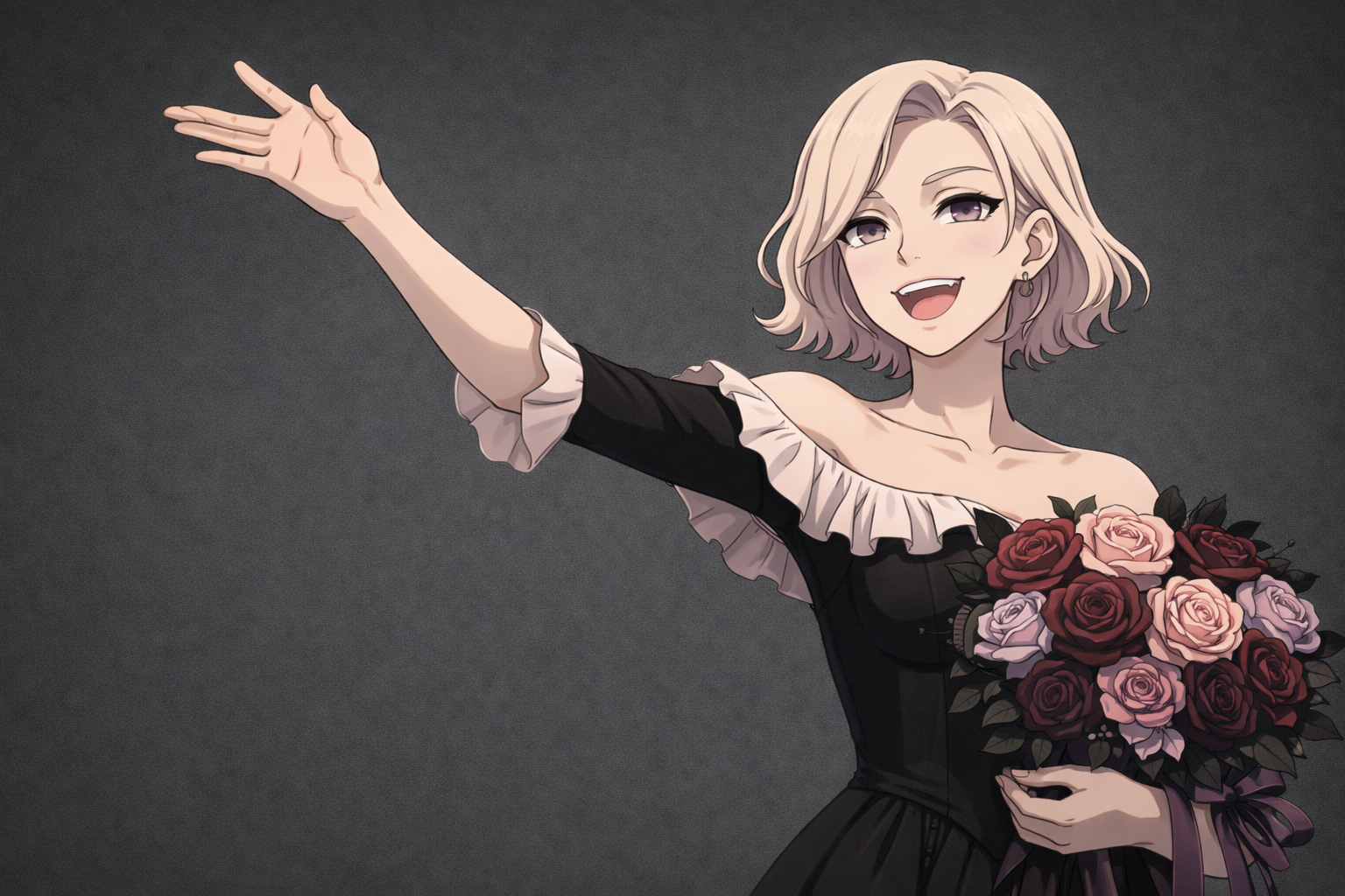 重厚で豪奢な“オペラ歌手風”の黒ドレス姿。