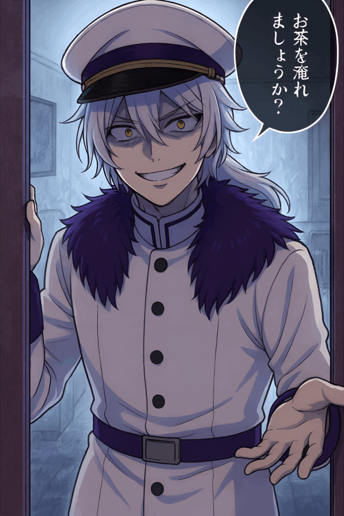 現れたのは──真っ白な軍服、紫のファー。