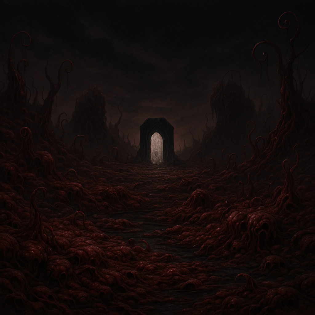 地面も空も“血肉”と異形に覆われた、深淵由来の激グロ景観。
