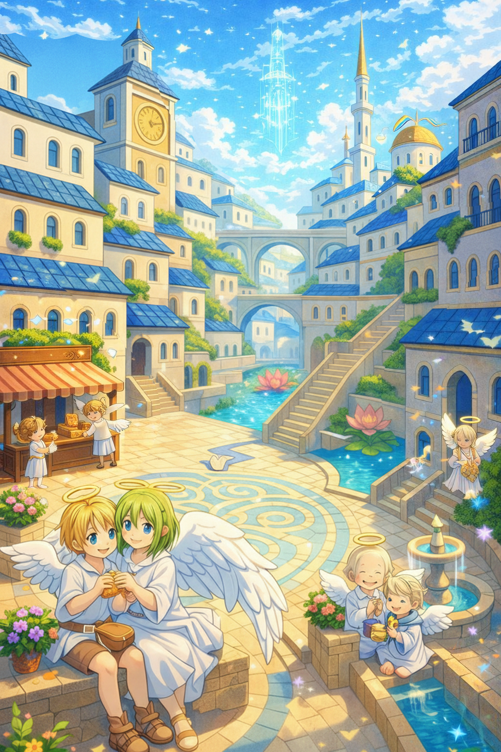 天使たちが地上の文化・習慣・カオスな空気に“慣れる”ための“リハビリ都市”