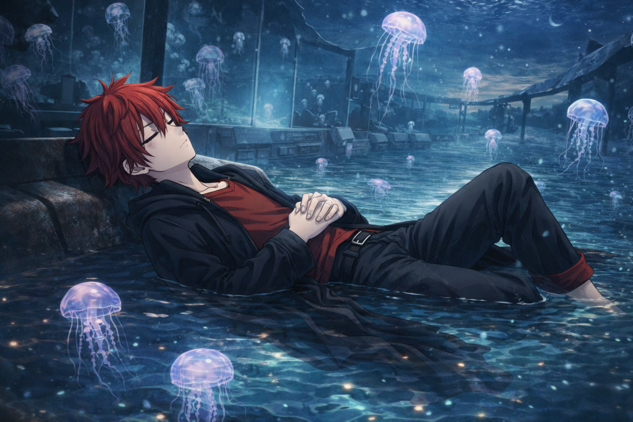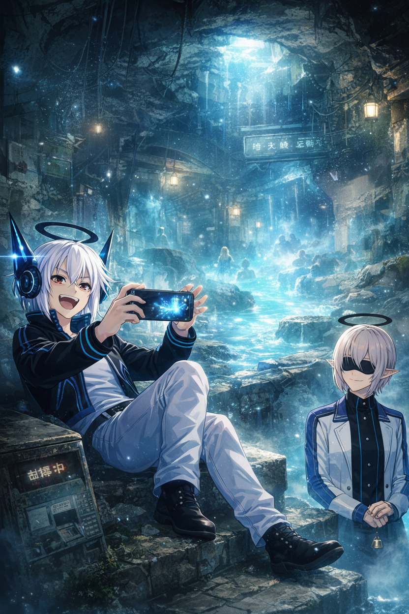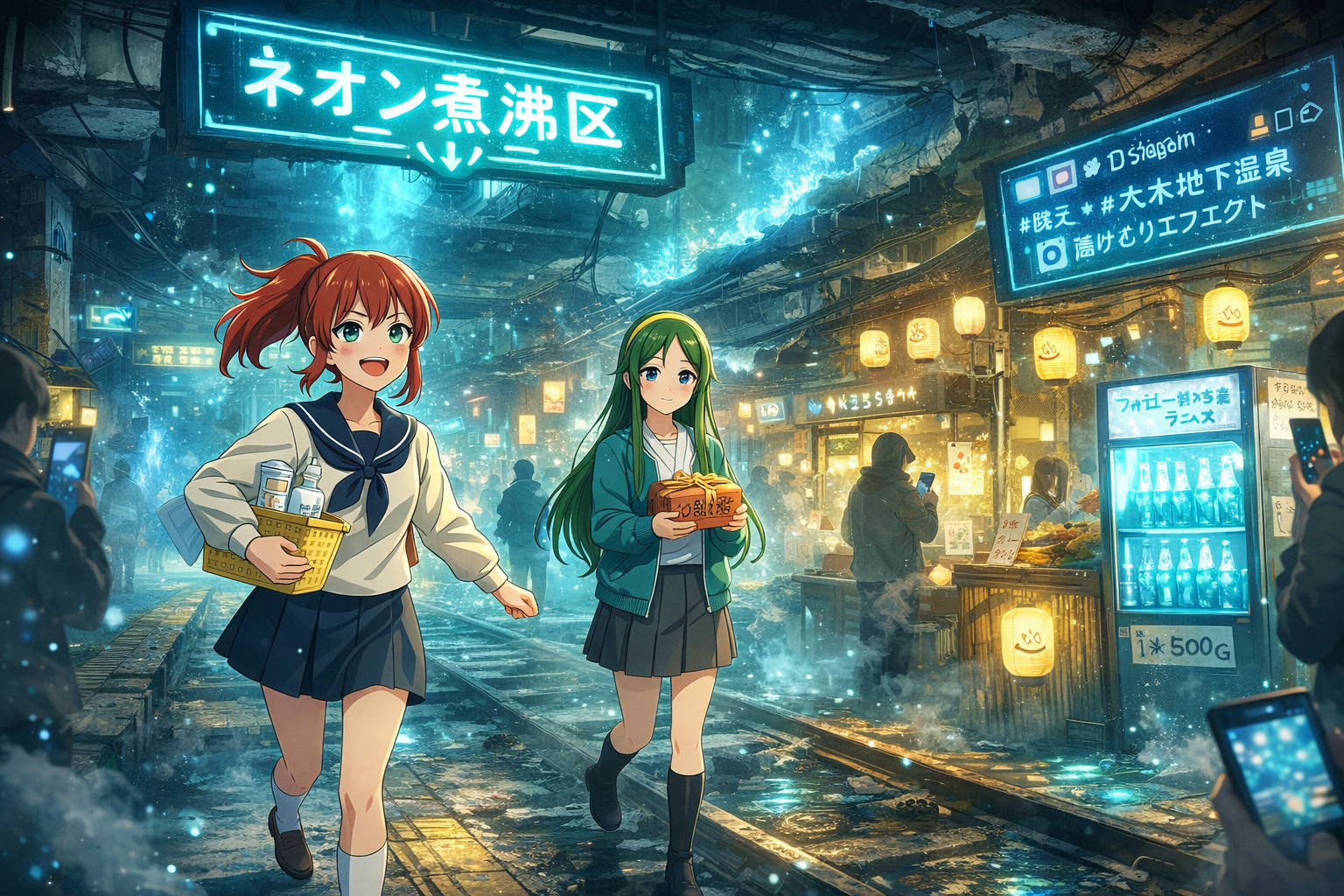 ネオンと湯気が同居し、呪詛・情報・噂が混ざる湯