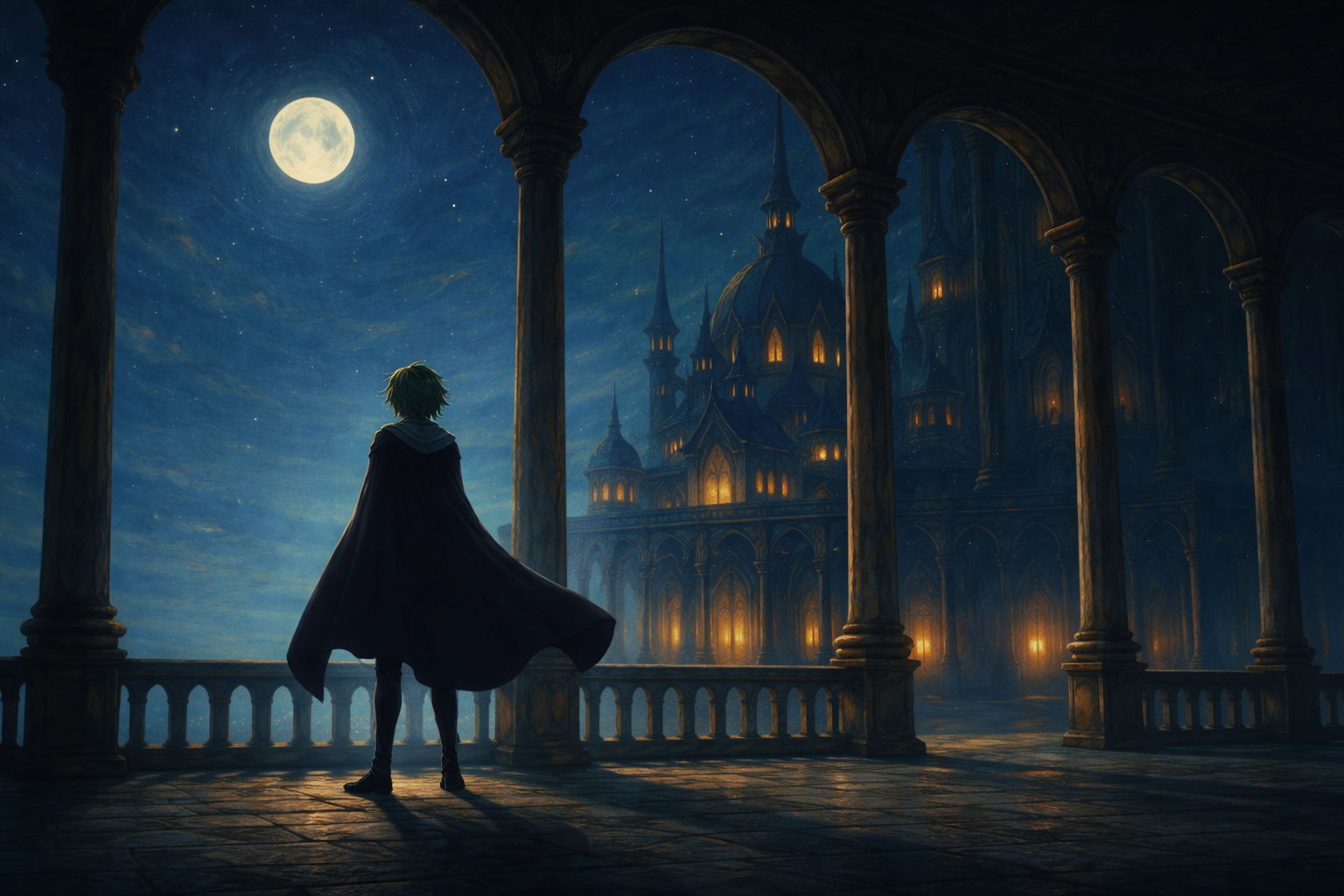 闇の向こうで、マントの影が揺れ、やがて夜に溶けていく。