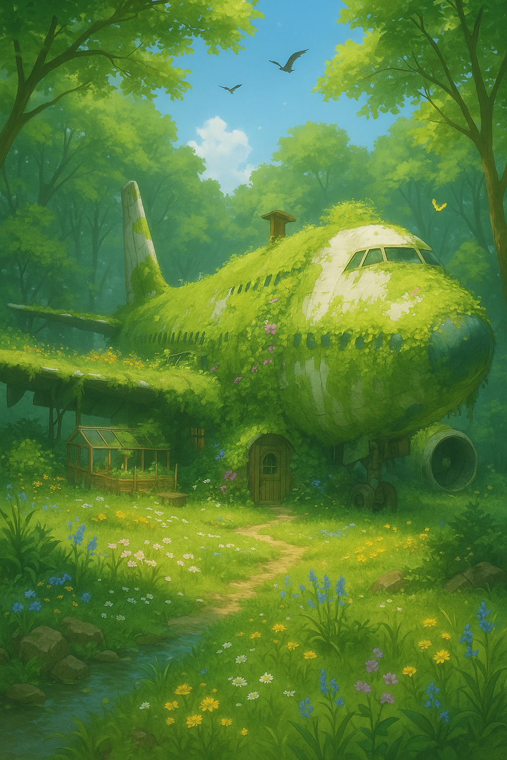 周囲は草花と苔に覆われ、見た目はまるで森に埋もれたエコ村。
