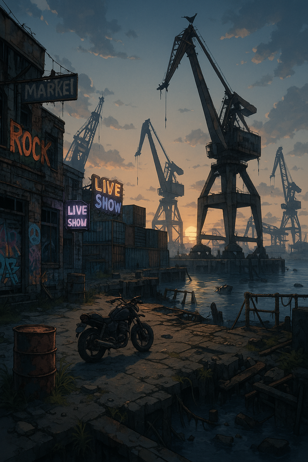 町全体がライブステージや酒場、闇市に改造されており、夜な夜な即興演奏と銃撃が響く